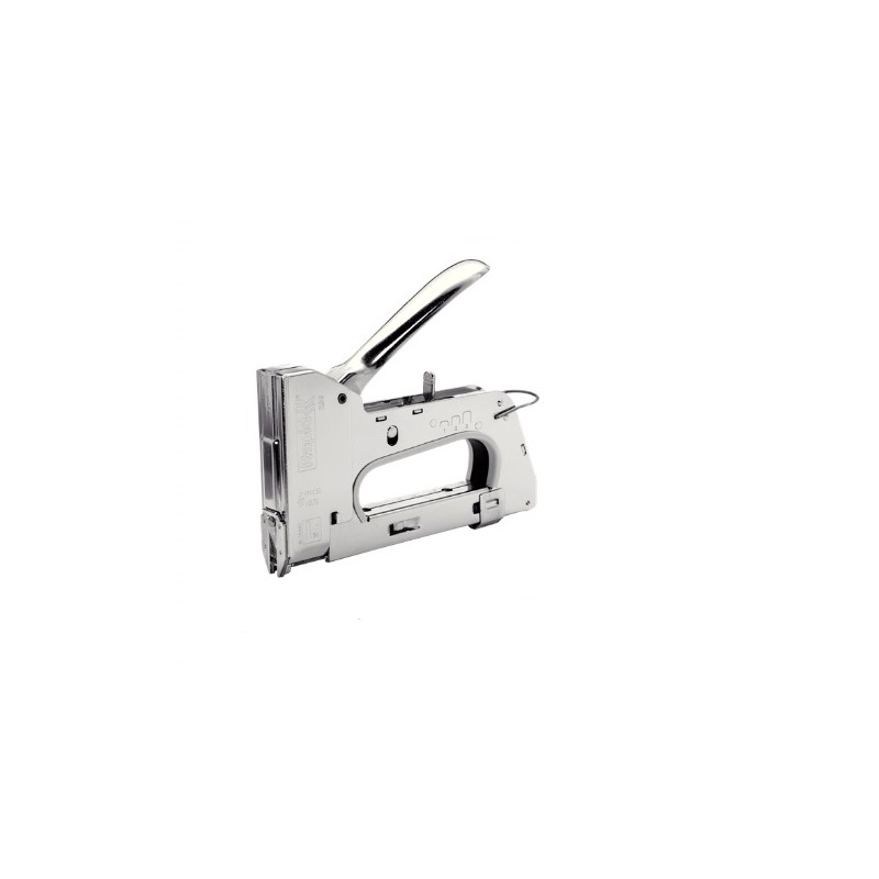 Agrafeuse métallique de haute résistance pour la pose de câbles électriques. Convient aux câbles basse tension de maximum 50V jusqu'à 6 mm de diamètre -tels que téléphonie, TV, alarme, haut-parleurs etc. Nouveau! Réglage de puissance 3 positions breveté, développé avec une physiothérapeute, pour soulager les muscles de l'avant bras. Réduit jusqu'à 40% votre effort pour les travaux qui requièrent des Agrafes de longueur moyenne. Parfaite pour les utilisations journalières et intensives.