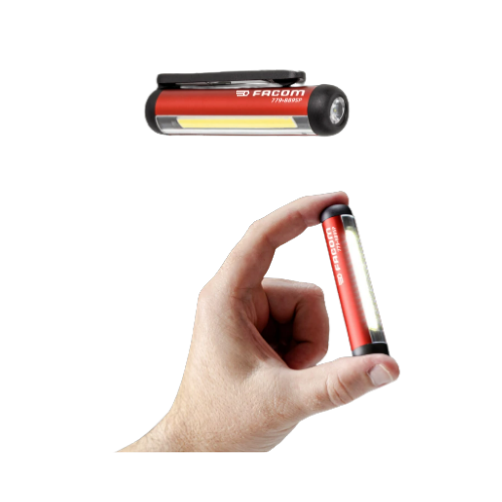 Toujours prête pour vos inspections, la lampe d’inspection compacte rechargeable FACOM (réf. 779.889SPPB) tient facilement dans votre poche grâce à son format ultra compact (95 mm de long pour 20 mm de diamètre). Idéale pour les professionnels, mécaniciens et bricoleurs, cette lampe LED FACOM combine puissance, légèreté et praticité.