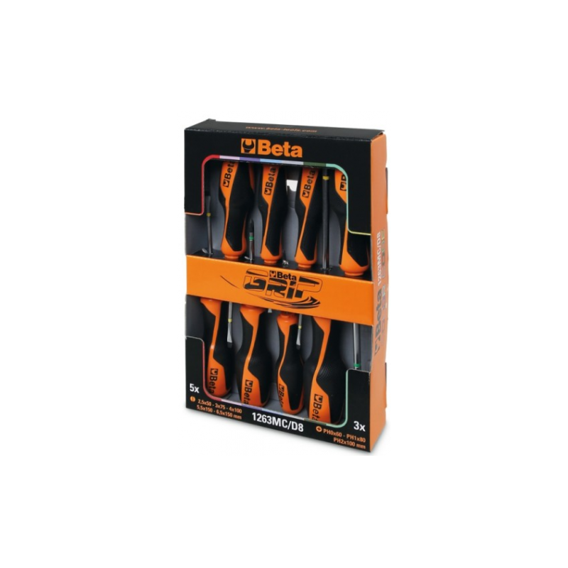 1262MC Tournevis pour vis tête transversale Phillips colorées : PH0x60 - PH1x80 - PH2x100 m/m