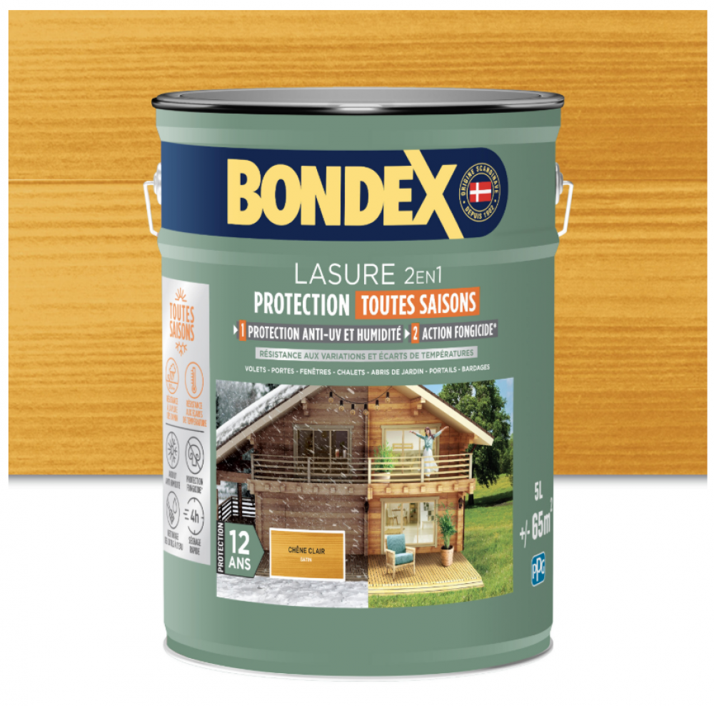 Lasure de protection BONDEX "12 ans" satin chêne clair de 5L